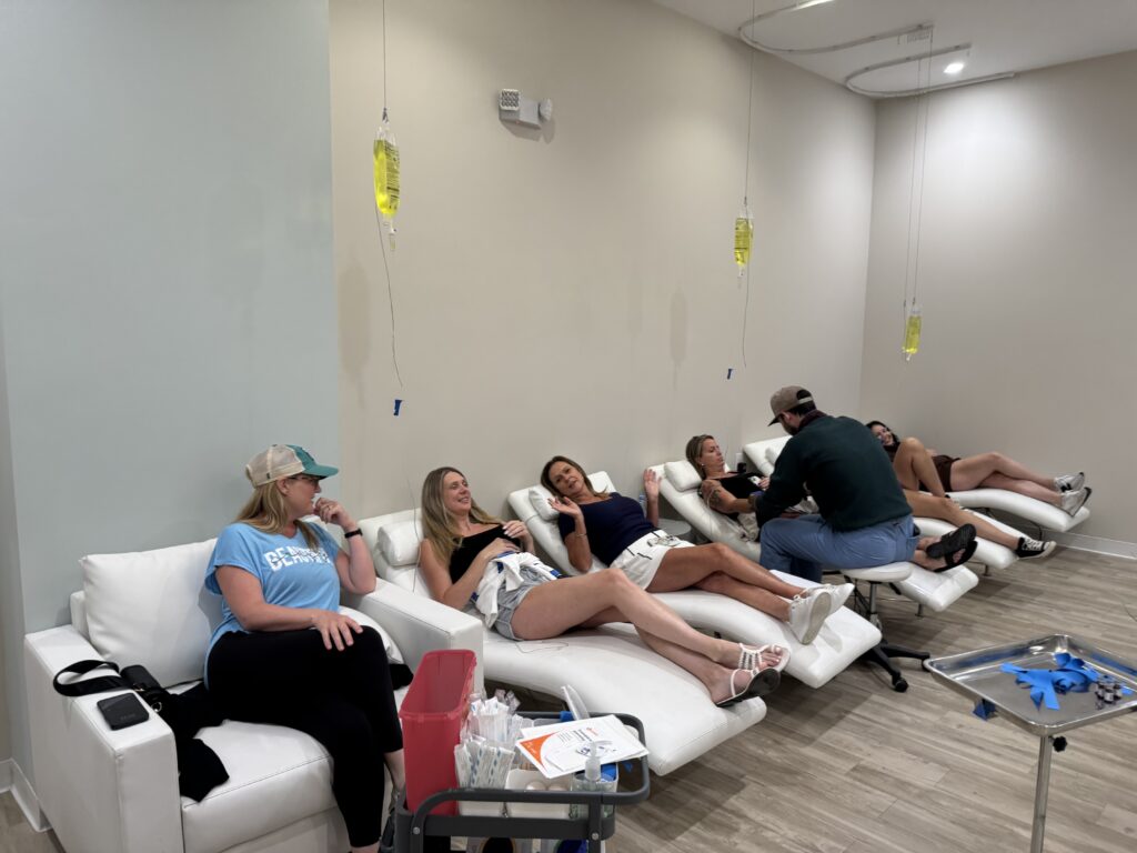 Turn any gathering into a wellness experience with our Drip Parties! Whether you’re hosting a bachelorette party, birthday celebration, corporate retreat, or wellness weekend, Nashville Wellness & IV brings IV therapy to your group with ease. Our licensed medical team provides personalized drips, expert care, and a relaxing setup right at your location. It’s the perfect way to hydrate, energize, and celebrate, together. Enjoy the benefits of group wellness while making memories that leave everyone feeling refreshed and recharged.